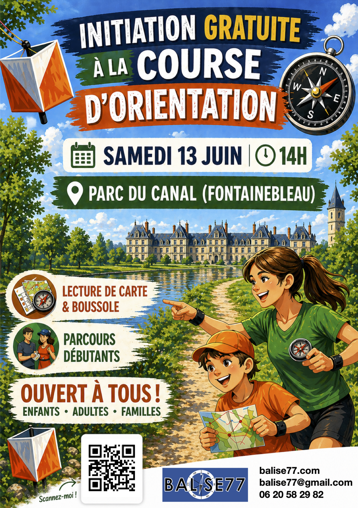 Le samedi 13 juin 2025 de 14h à 17h, le club Balise 77 vous propose une initiation gratuite à la course d’orientation dans le parc du canal du château de Fontainebleau !